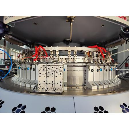 Tubular double jersey computer jacquard double jersey circular knitting  machine with two /three ways needle-selecting system which is able to produce delicate and high-end transfer jacquard fabrics through its high feeders and high fine gauge design .